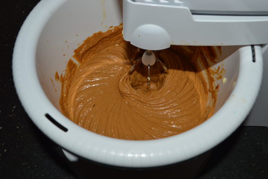 - Topiti untul in cuptorul cu microunde 20-30 de secunde, sau la aragaz intr-o cratita. Turnati untul in bol. Bateti cu mixerul.