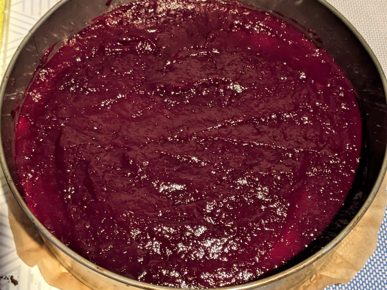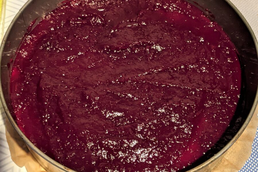 - Faceti stratul de fructe de padure din coacaze congelate. Aduceti fructele de padure la fierbere, fierbeti-le putin si strecurati-le printr-o sita.