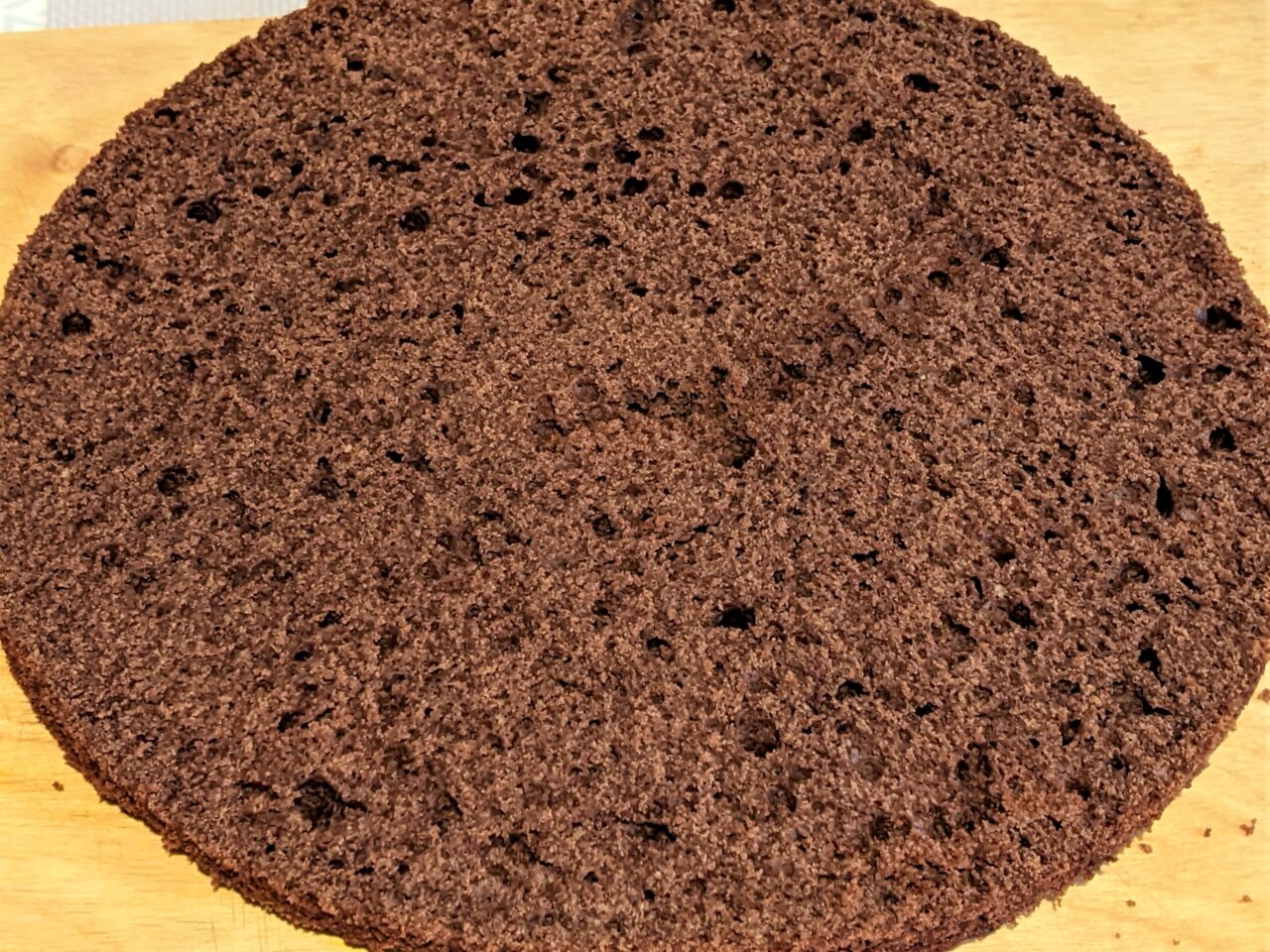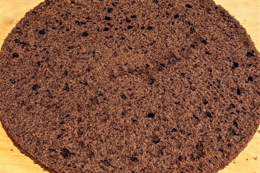 - Puneti al treilea blat deasupra cremei. Deoarece nu am taiat partea de sus, tortul a iesit un pic in forma de cupola.