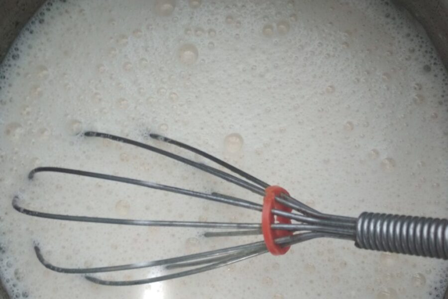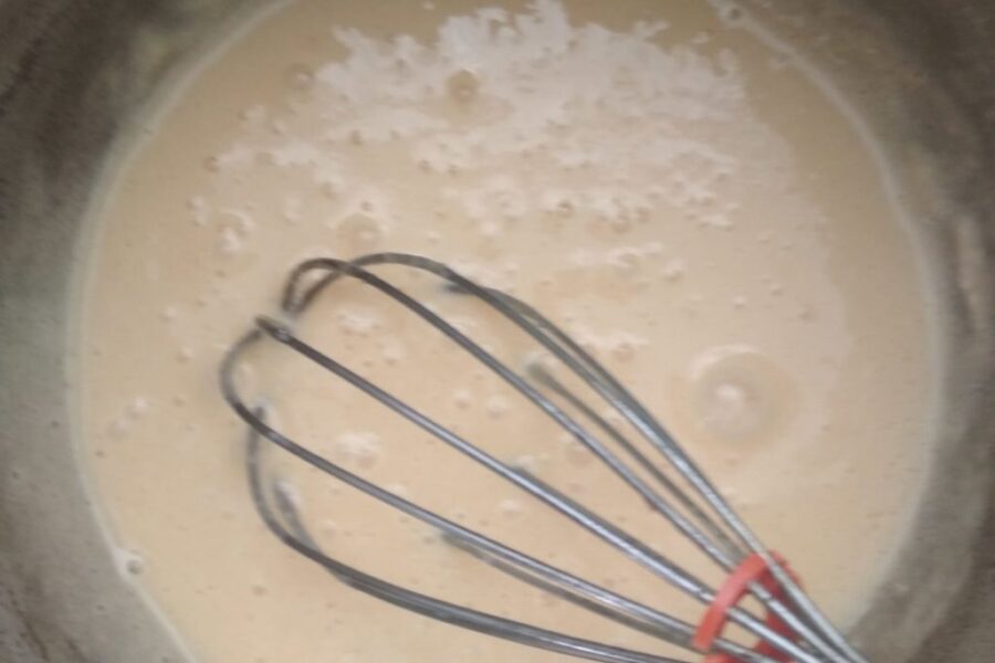 - Se toarnă laptele și se amestecă bine.