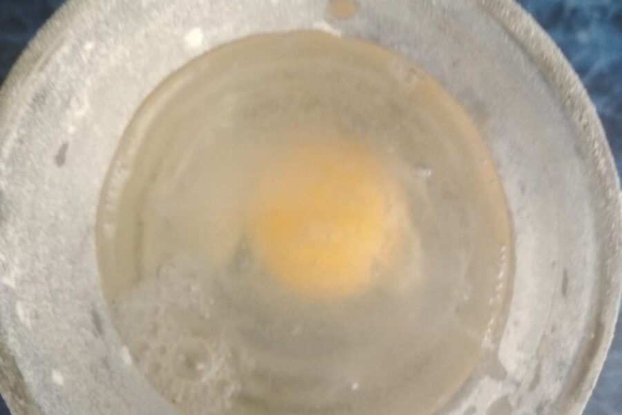 - Se bat ouăle într-un pahar, se toarnă sarea, se toarnă oțetul, se toarnă apă până la paharul plin, se amestecă bine.