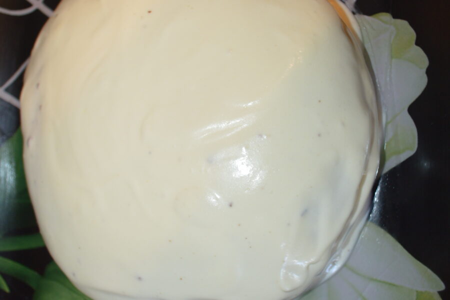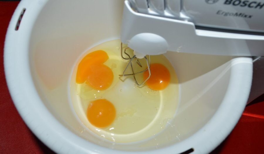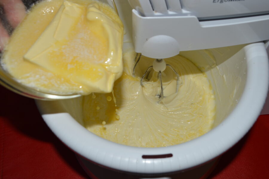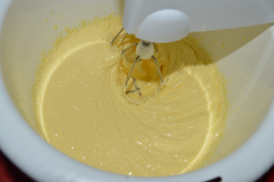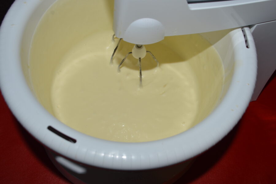 - Bateti cu mixerul timp de cateva minute, pana se face o consistenta mai spumoasa.