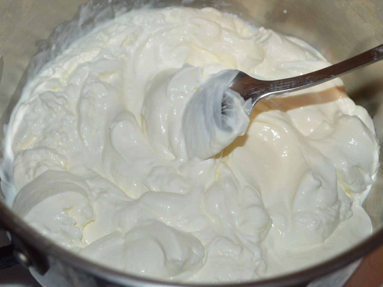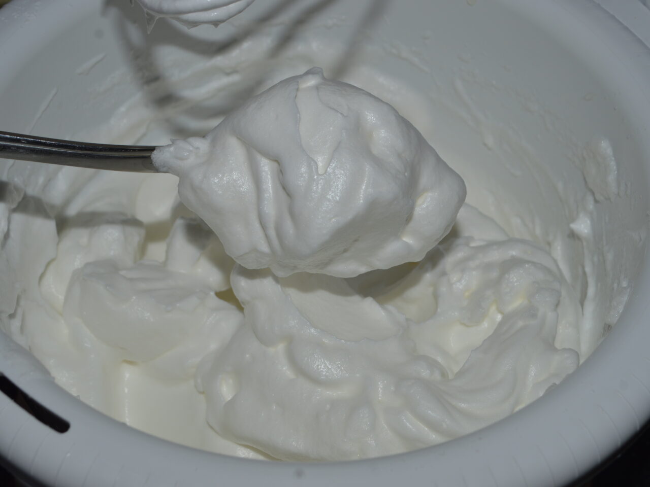 - Scoateti din frigider crema, si mixati-o la viteza maxima pana se ingroasa.