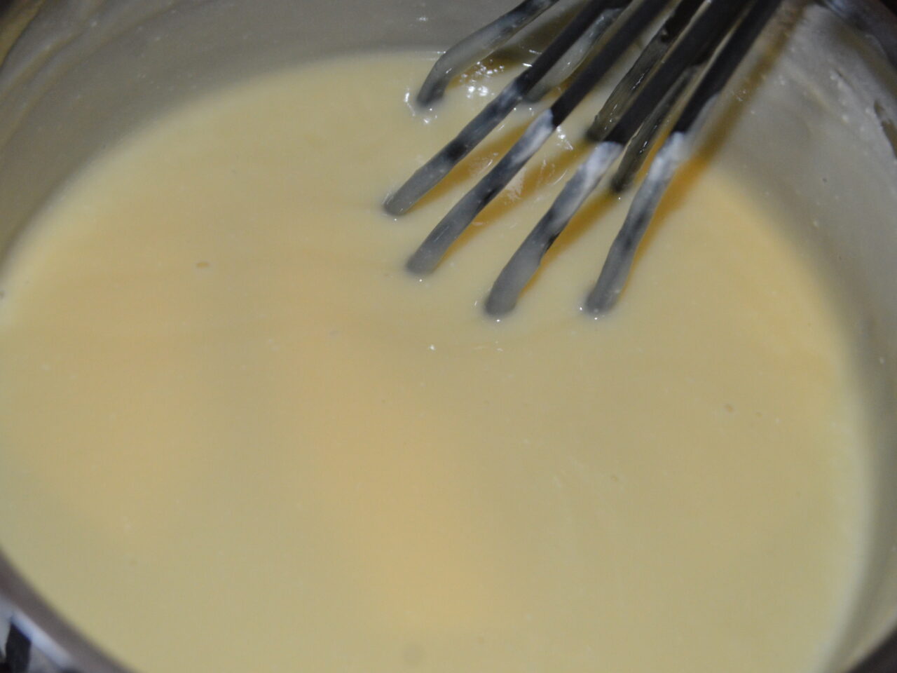 - Apoi amestecati bine cu un tel, ca sa se dizolve ciocolata bine. Lasati sa se raceasca complet apoi o dati la frigider pentru 2-3 ore.