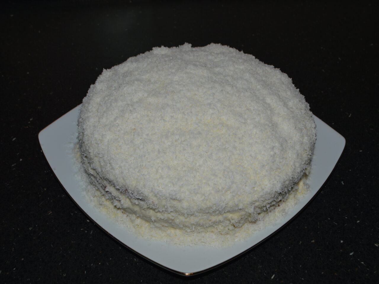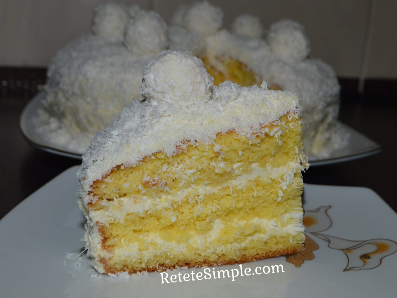 - Presurati cu nuca de cocos deasupra si pe laturile tortului.