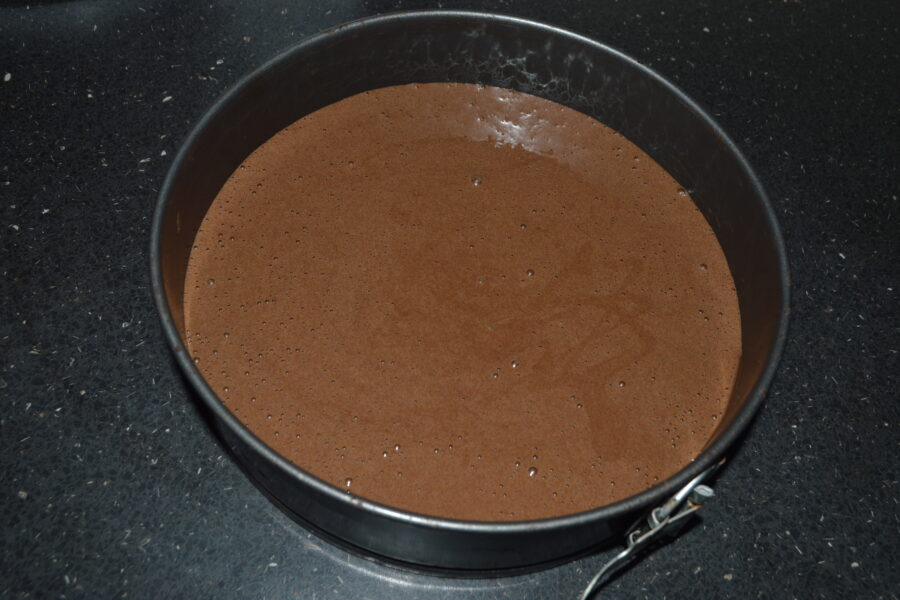 - Porniti cuptorul la 180 de grade Celsius. Turnati compozitia intr-o forma de 19 cm, si dati la cuptor, timp de 30 de minute.