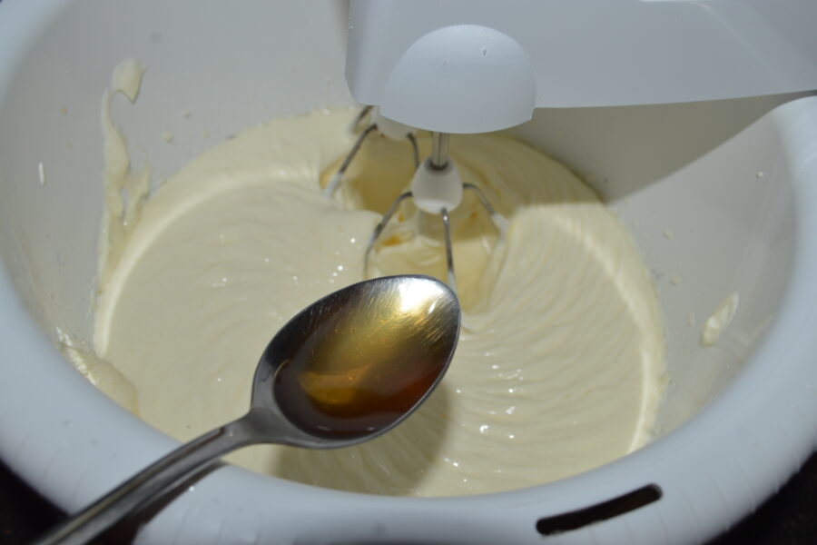 - Adaugati o lingurita de esenta de vanilie. Mixati timp de 7-8 minute.