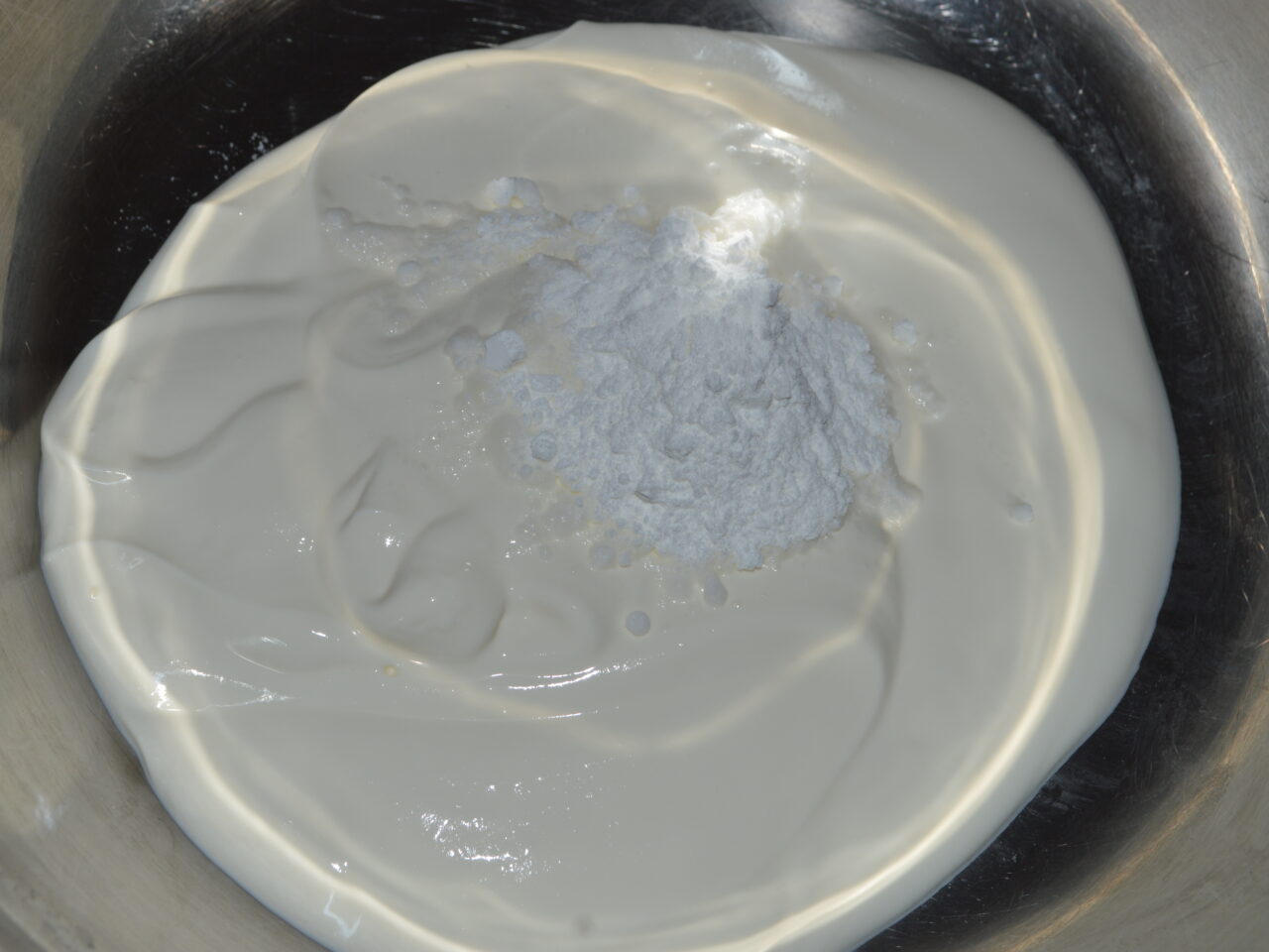 - Intr-un bol puneti cele 200 gr de smantana si praful de copt.