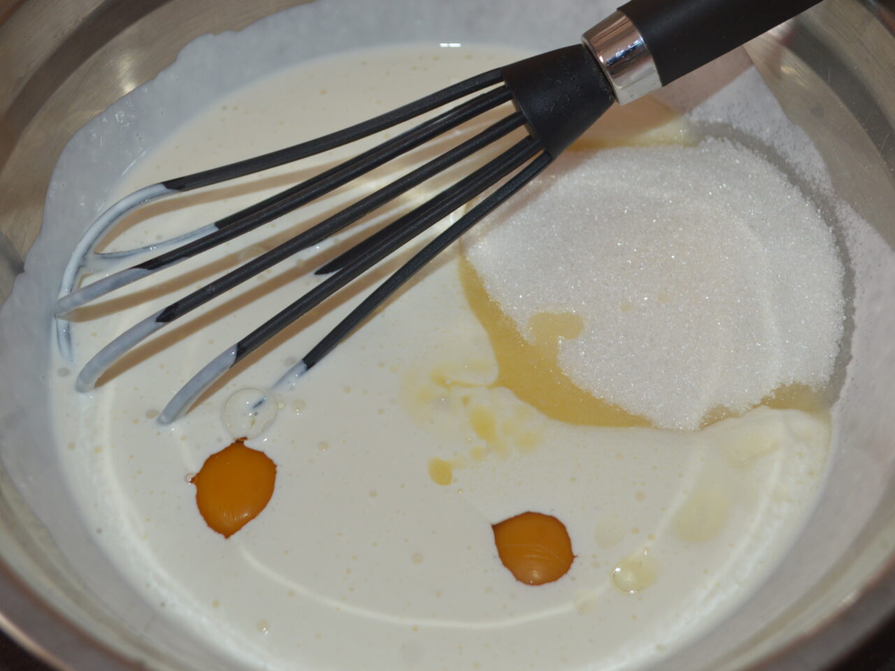 - Adaugati ouale, zaharul, uleiul si untul topit.