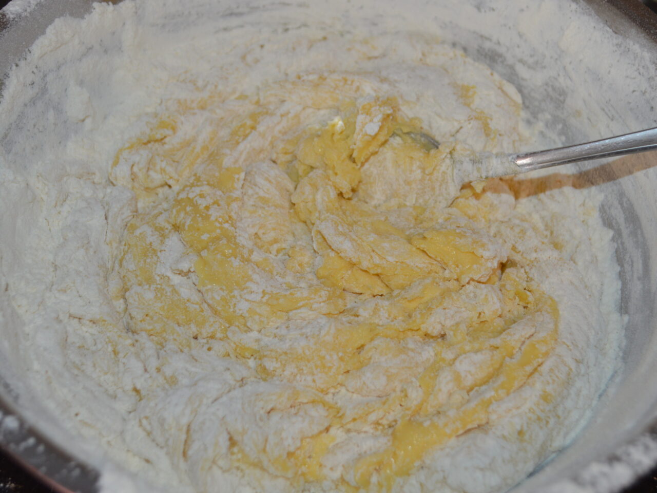 - Amestecati de la inceput cu o lingura, apoi framantati cu mainele.