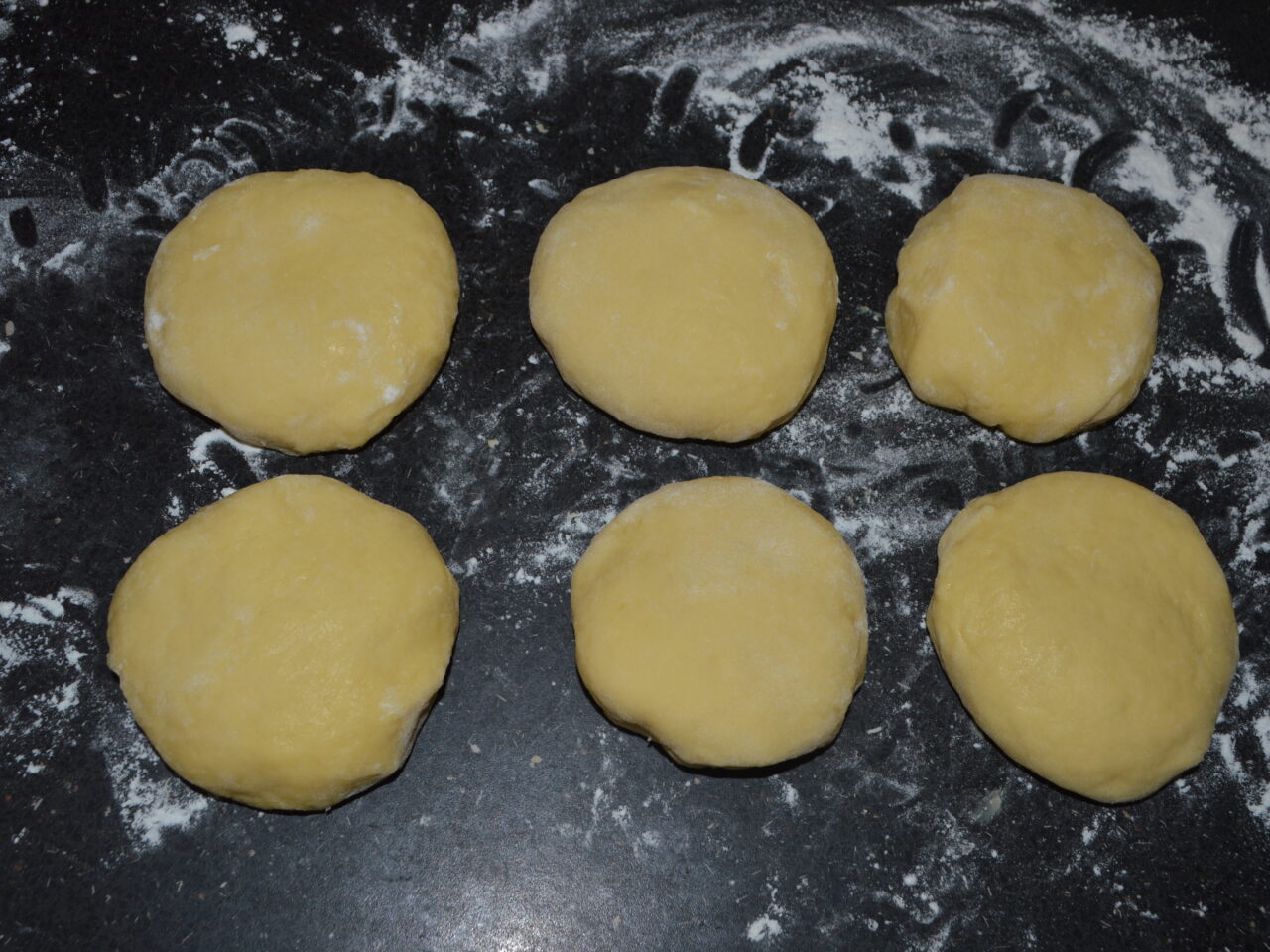 - Dupa ce aluatul s-a odihnit, il impartiti in 6 bucati, modelati in forma de bile.