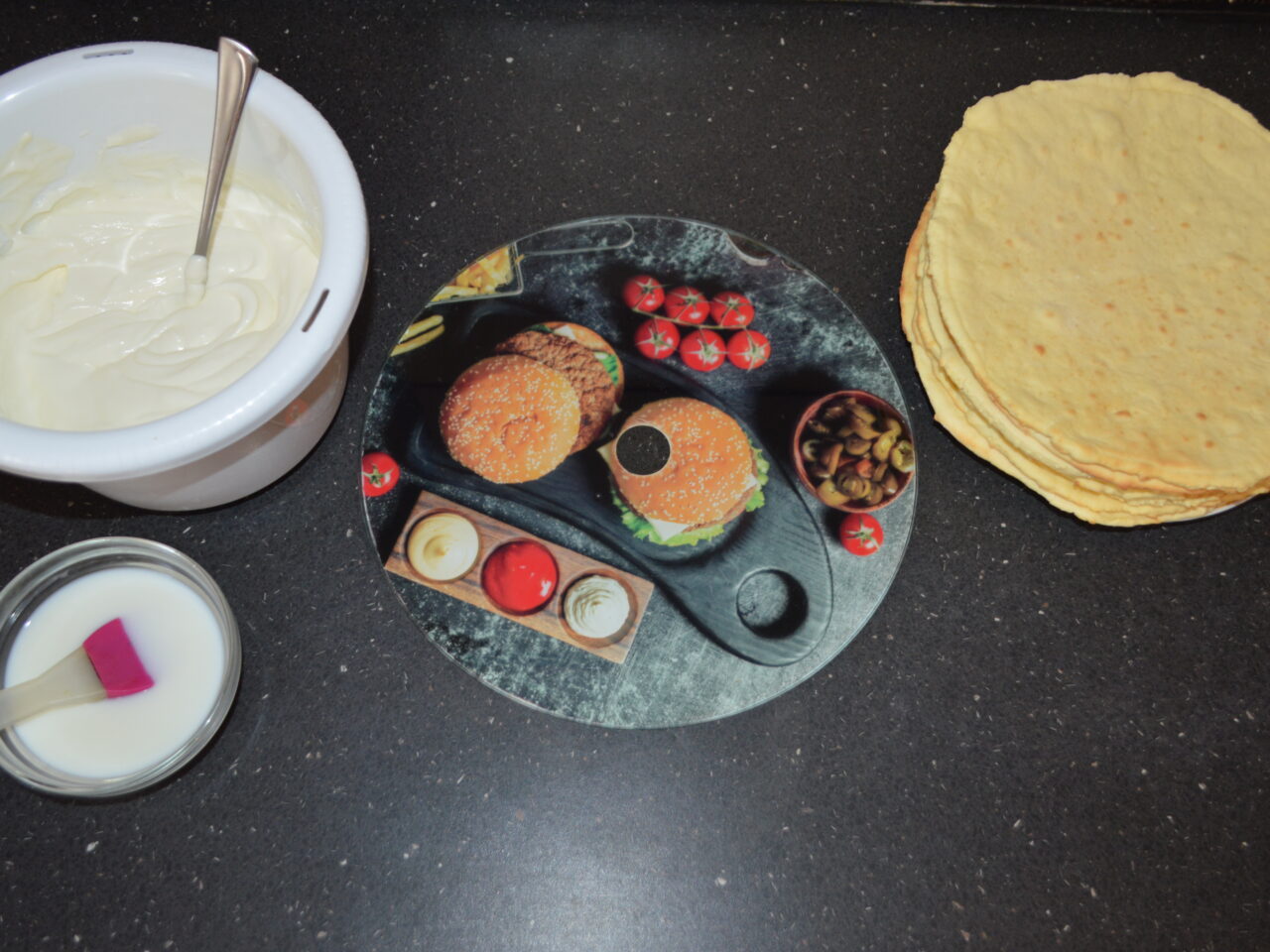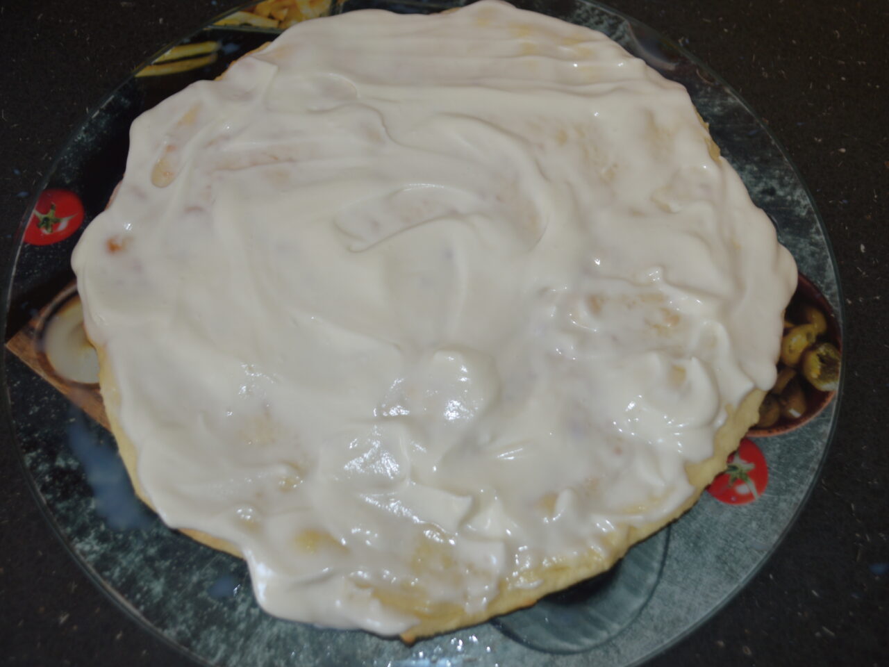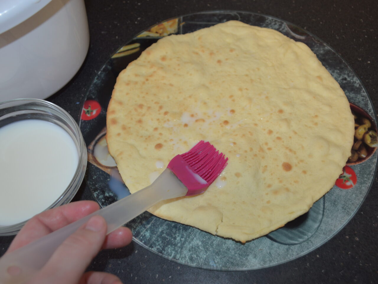 - Pe platou puneti putina crema apoi foaia de aluat. Ungeti cu lapte caldut fiecare foaie.