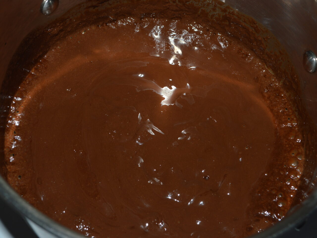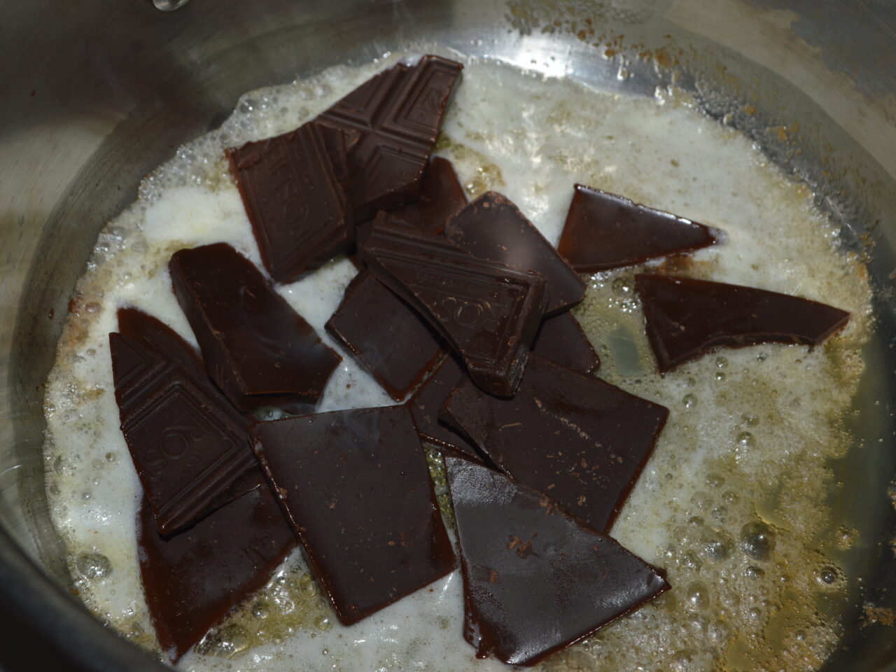 - Apoi rupeti ciocolata neagra in bucati mici, ca sa se topeasca mai repede.