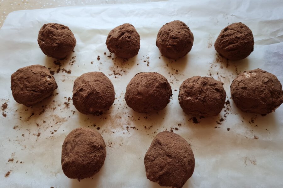 - În ambele cazuri le rostogoliți ulterior fiecare prăjitură în amestecul de cacao.