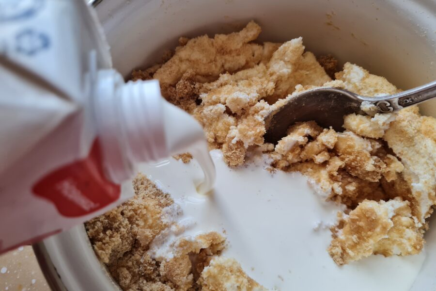 - La final, turnați frișca, obținând o textură omogenă, ușor vâscoasă, care să vă permită să dați preparatului orice formă doriți.