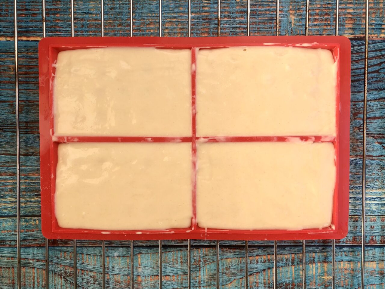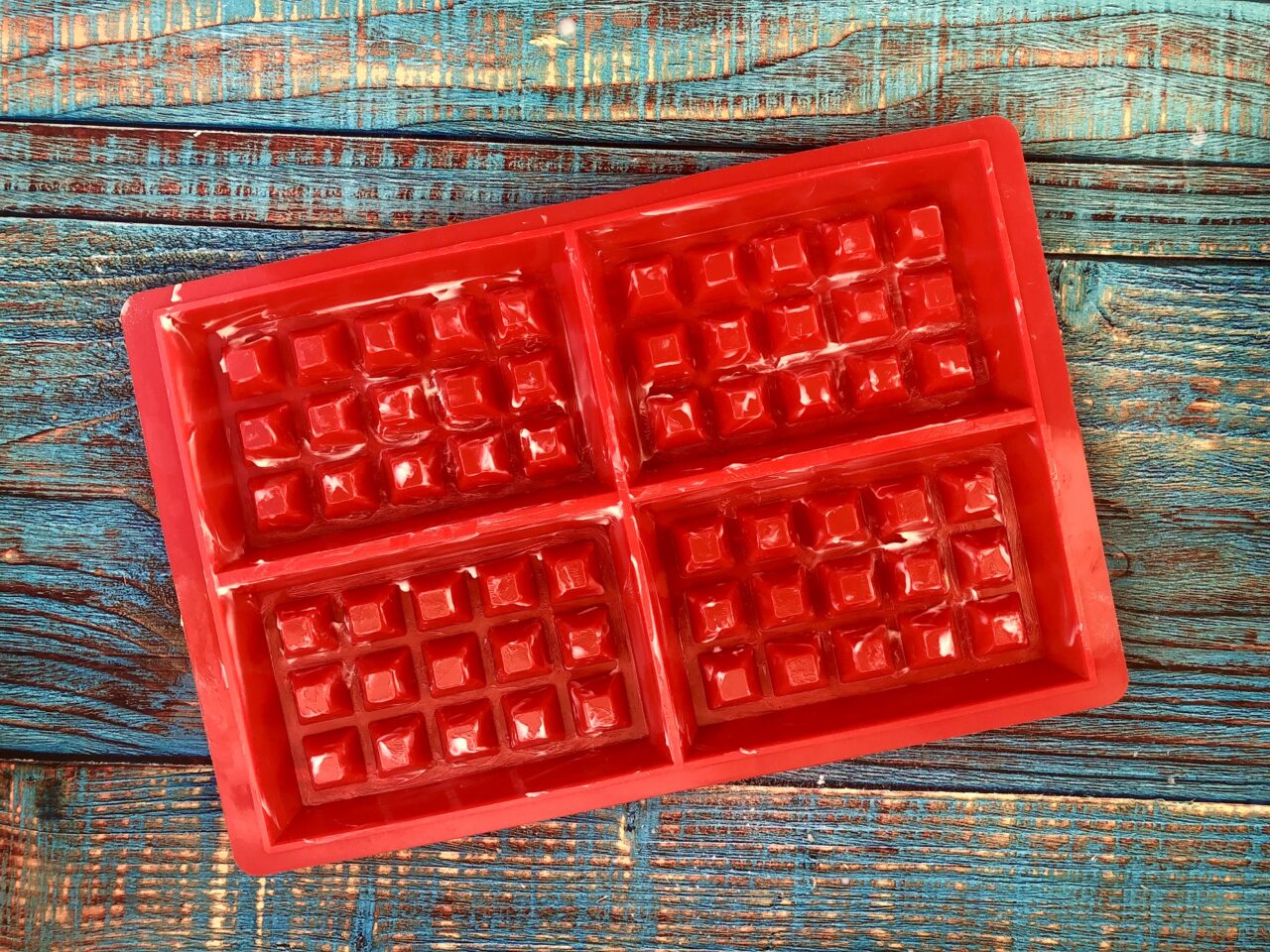 - Se toarnă aluatul în formele de vafe. Nivelați suprafața aluatului cu o spatulă de gătit sau un cuțit de pâine – ambele instrumente au o suprafață plată potrivită pentru acest lucru.