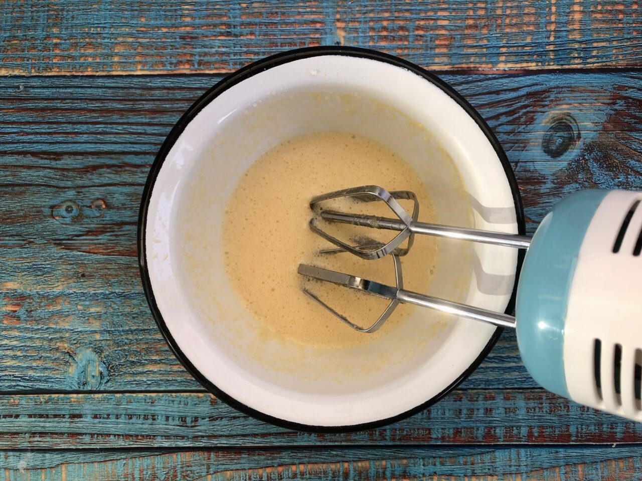 - Bateți untul înmuiat în cremă cu zahărul și vanilia.