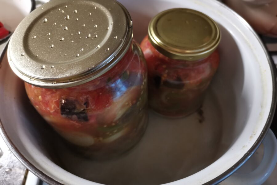 Vinete cu ardei la borcan pentru iarna este reteta care pastreaza gustul verii in fiecare borcan. Vinetele si ardeii taiati gros, putin prajiti, apoi conservati cu rosii, otet si mirodenii, capata aroma si rusticitate. Perfect pentru zile friguroase, cand vrei un aperitiv sanatos si aromat, fara sa depui efort mare. Aceasta conserva se prepara usor si ofera satisfactie verii pe masa oricand.