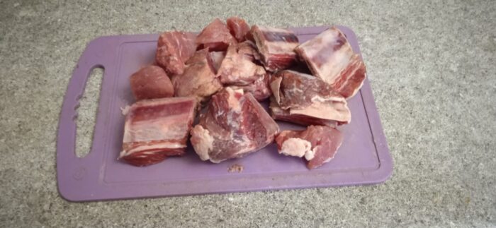 În timp ce eram ocupați cu legumele, carnea era înăbușită. Se separă carnea de oase și se întoarce la ceaun.