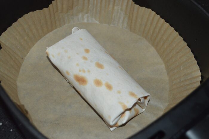 Daca folosiesti Air Fryer, pune ruloul pe hartie de copt sau intr-un cos mic, ca sa nu se lipeasca si sa il poti intoarce usor la jumatatea timpului de coacere.