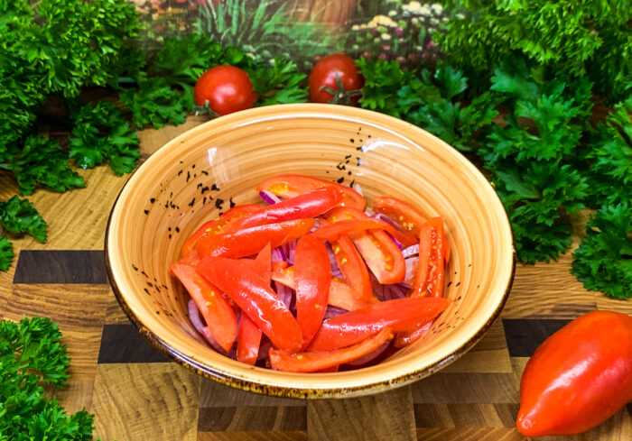 Asezonati cu ulei de masline sau de floarea soarelui, si amestecati usor toate produsele preparate cu o lingura de lemn.