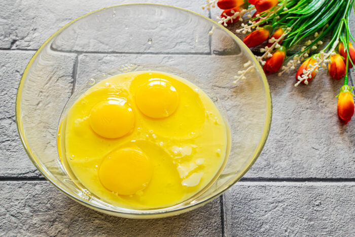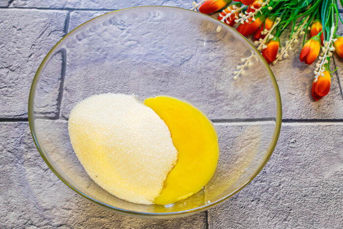 Mai întâi de toate, pregătiți crema. Pentru a face acest lucru, bateți gălbenușurile cu zahărul până se albesc.