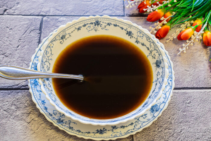 Pregătiți impregnarea. Fierbeți cafeaua, turnați-o într-un bol, amestecați-o cu zahărul și romul.