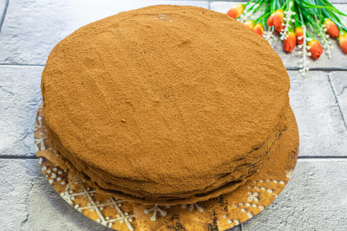Așezați crustele finite cu fața în jos pe farfurii diferite, îndepărtați pergamentul. Blatul va avea o parte din spate foarte poroasă, care va absorbi bine impregnarea. Partea lucioasă din față nu se va impregna bine. Nu puneți prăjiturile una peste alta - se vor lipi una de alta.